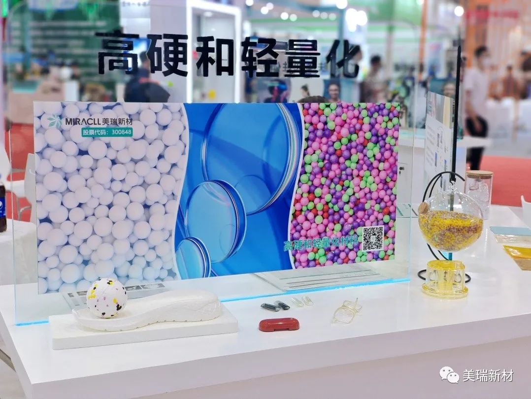 轻量化材料具有密度低、超高回弹性、超高耐黄变性、良好的耐曲折性、高支撑性以及低压缩变形性。用于鞋材、运动护具、体育地材等。