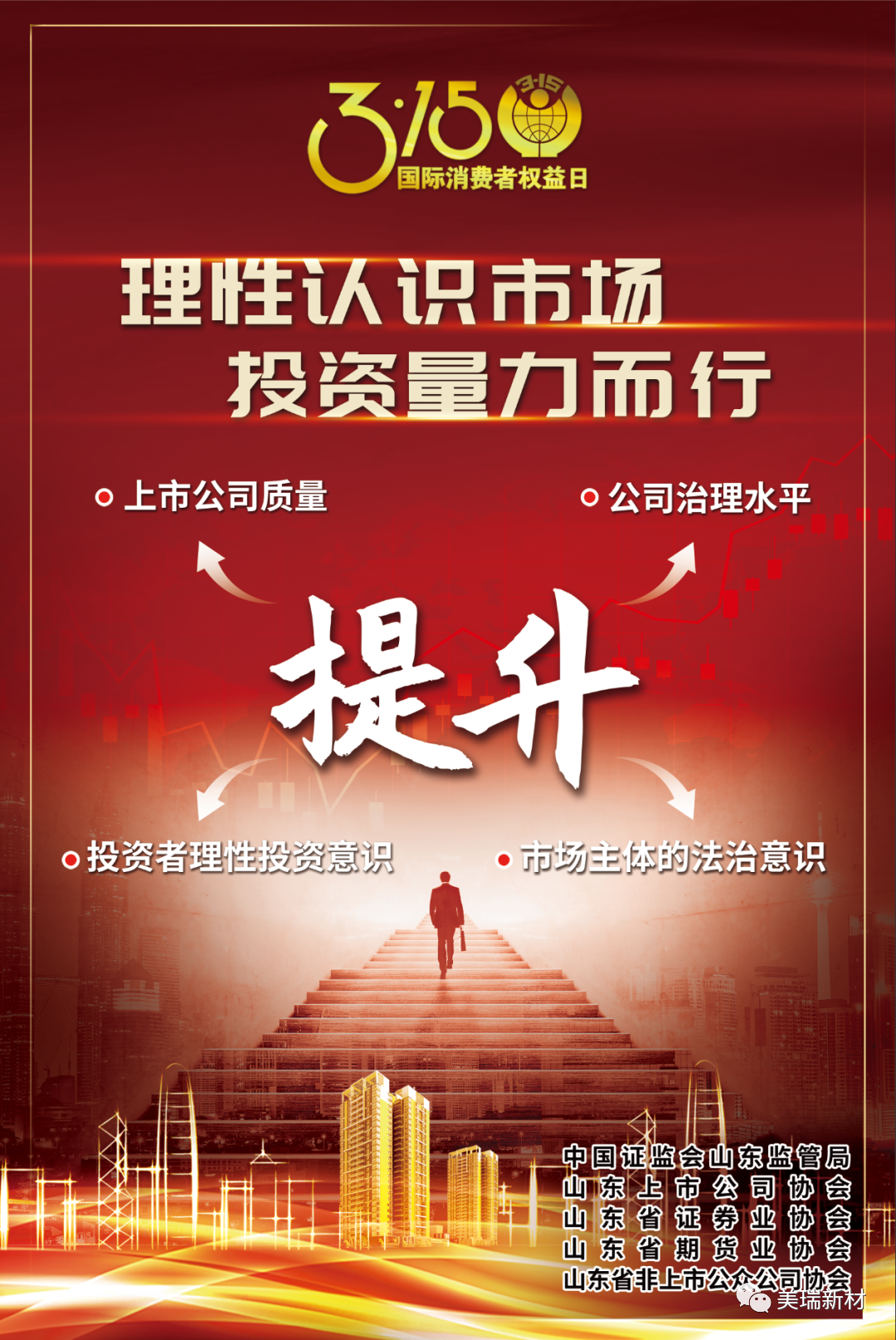 为维护投资者合法权益,推动资本市场持续健康发展,提升投资者的理性投资水平和风险防范意识,切实做好投资者合法权益保护工作,赏金船长官网新材响应山东证监局号召,开展“3.15 国际消费者权益日”宣传活动,进一步倡导理性投资文化,积极营造理性投资、认识风险的健康氛围。