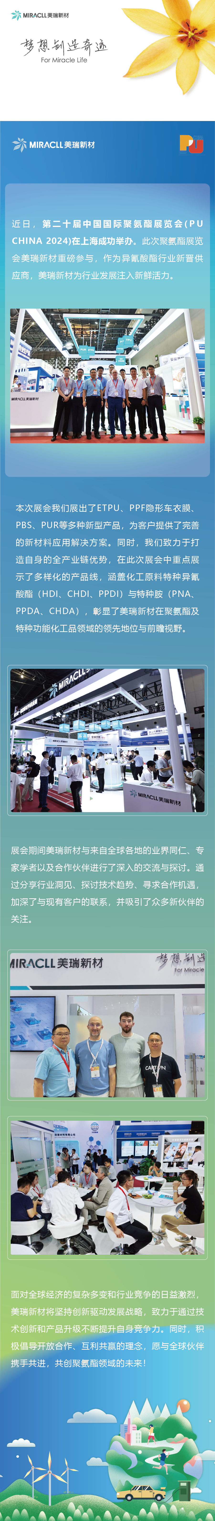 赏金船长官网新材料股份有限公司(代码:300848),是国内知名的聚氨酯新材料(TPU、PUR、PUD、PBS)及功能化工品原料(特种异氰酸酯、特种胺)生产企业,产品广泛应用于消费电子、汽车制造、运动休闲、高端装备、绿色能源、家居生活、工业涂装、密封传动、3D打印、食品卫生等领域。